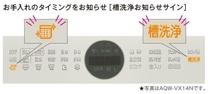 見えない洗濯槽裏の水滴はぬめりになって、カビの原因にもなりそう。「槽洗浄お知らせサイン」、「カビケア槽自動おそうじ」機能なら、清潔な洗濯槽をキープします。