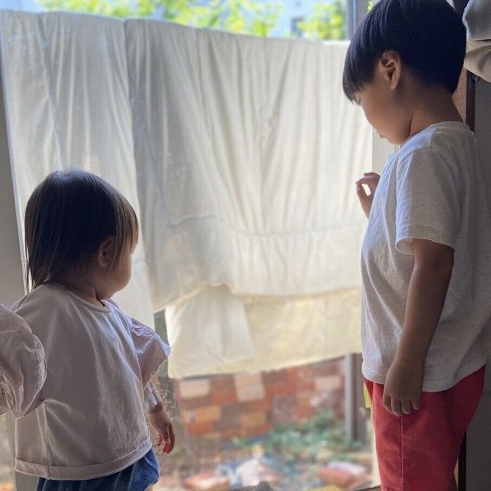 息子は、洗濯機の動きが楽しいらしく、度々洗濯機の中をのぞいています(笑)。