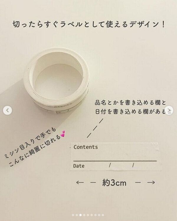 らむさんがキャンドゥで購入したのは書きこむことのできるマスキングテープ。ミシン目があるので手でもきれいに切ることができ、シンプルなデザインで気に入っているのだとか。品名や日付を書きこめるのはとても便利そう!