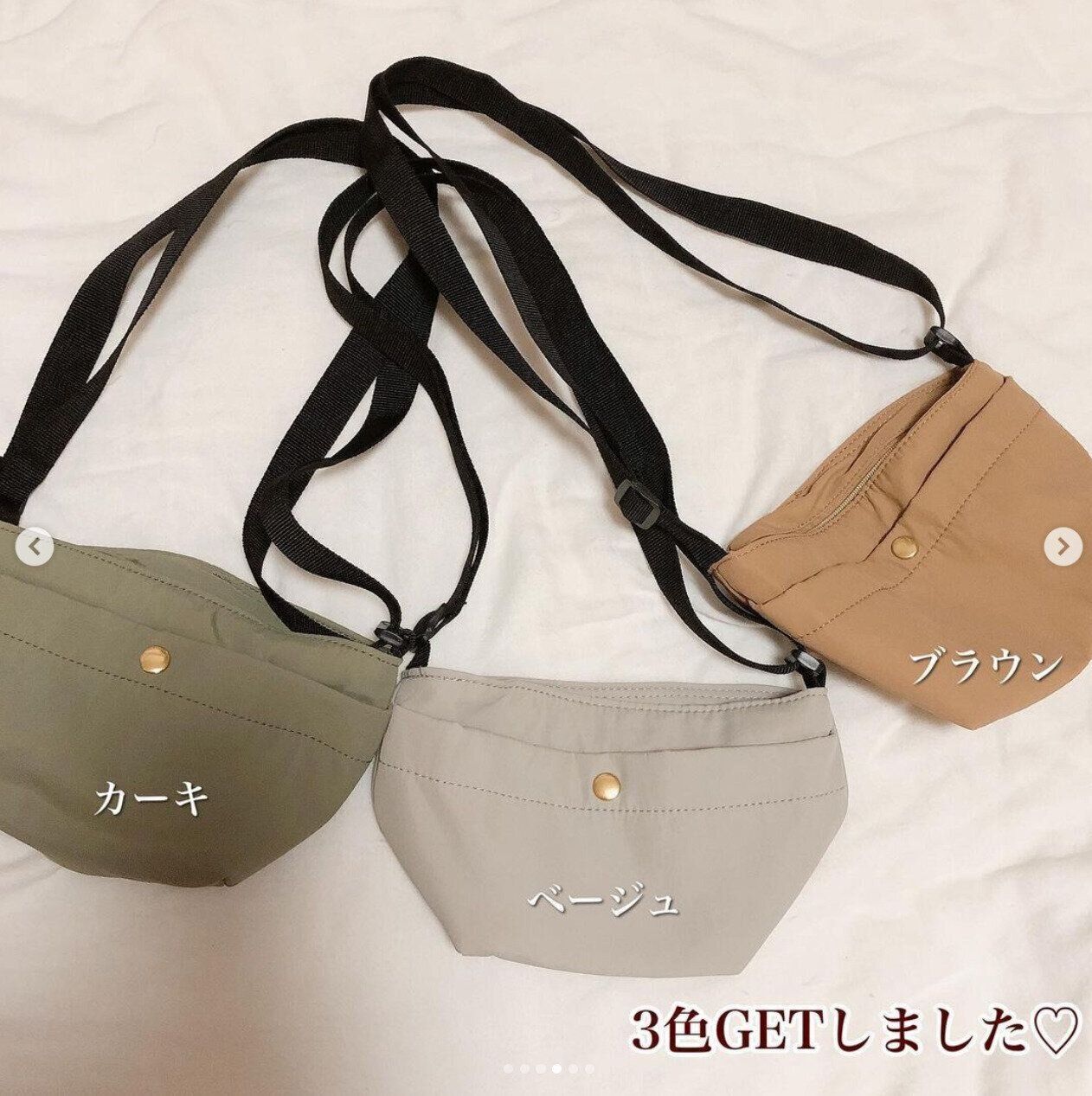 こちらはtumug25さんが3COINSで購入したジップショルダーバッグ。お子さん達の分と合わせて3つ購入したそうです。小さめサイズのようですが、ミニ財布とキーケースを入れても余裕があるとのこと。ゴールドのボタンとファスナーが高見えしていますよね♪