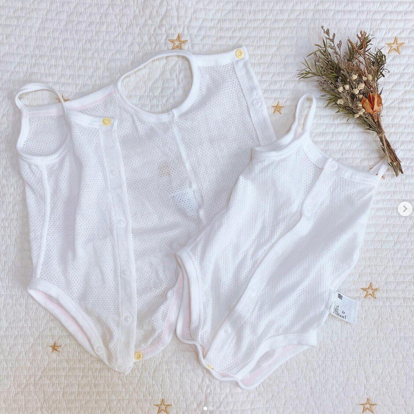 shiii3929さんが「本当におすすめ」と紹介しているのはUNIQLOのコットンメッシュボディスーツ。前開きタイプなので新生児から使うことができて、メッシュ素材やキャミソールになっている点もお気に入りポイントだとか。