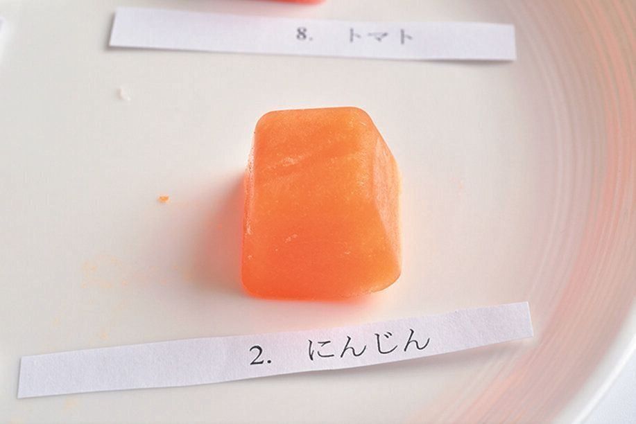 数種類の野菜(たとえば、にんじん・キャベツ(葉先)・さつまいも)を1つの鍋で一緒にゆでます。ゆでたあとは、1種類ごとに、ミキサーやすり鉢でペースト状にし、ゆで汁を加えてなめらかに混ぜてから、1回分ずつ製氷皿などの容器に入れて冷凍しましょう。