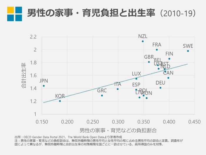 男性の家事・育児負担の少ない国は、少子化になりやすい