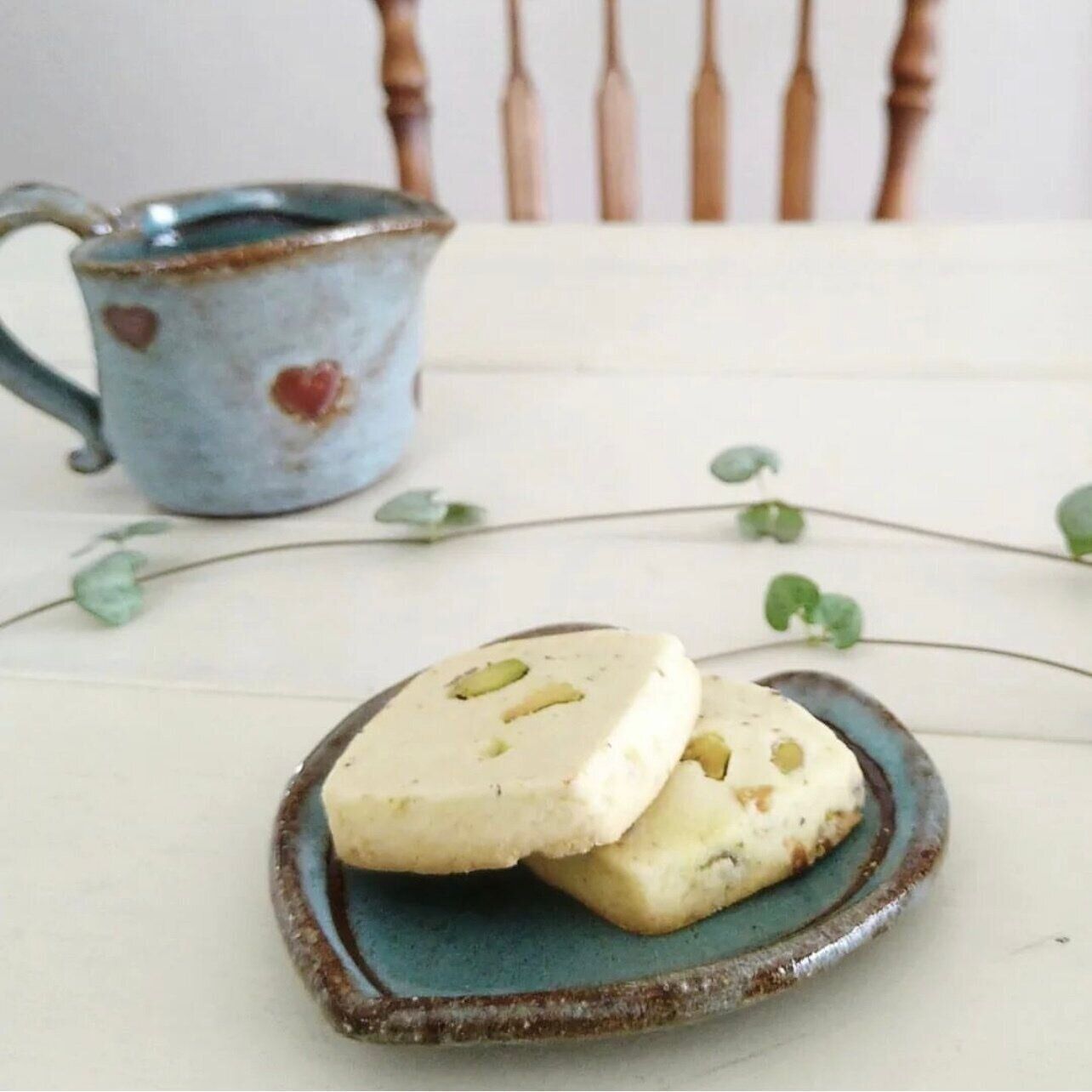 littlechair.mさんはセブンイレブンのピスタチオクッキーをお供にコーヒーブレイク。シンプルなクッキー生地にゴロっと入った大粒のピスタチオが練り込まれているみたい。ナッツの食感がアクセントになっていておいしそうですよね。