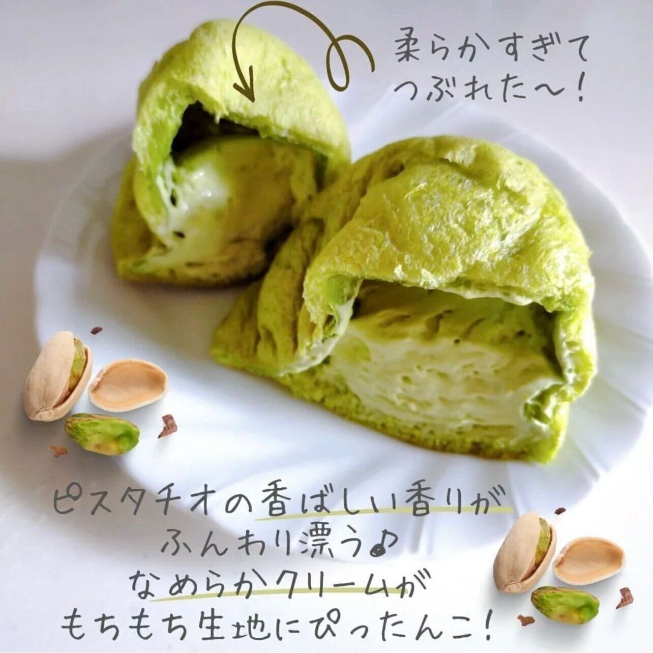 はなさんが購入したのは、セブンイレブンの大人気「もこ」シリーズのピスタチオ味です。もっちりとしたシュー生地にはなめらか食感のピスタチオクリームがたっぷり♪ ピスタチオの香ばしさも感じられるんだそう。こちらは183円商品のようです。