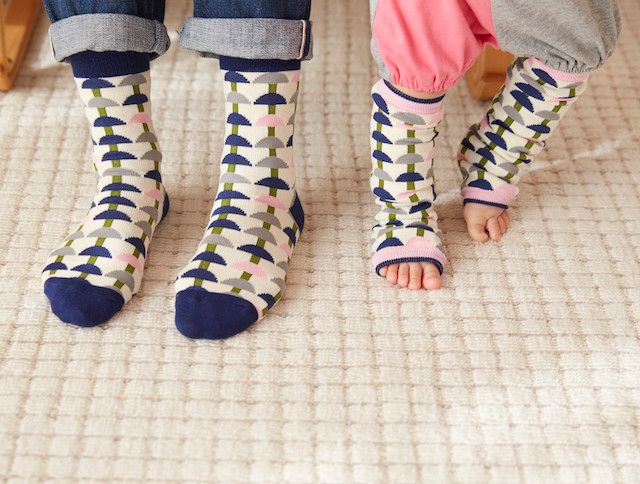 マリメッコで活躍するファッションデザイナー、大田舞さんがデザインするベビーレッグウォーマー。男の子もOKなユニセックスなデザインは、大田さんが暮らすフィンランドの四季をイメージしているそう。ママ用ソックスもあるから、おそろいもできちゃいますよ♪