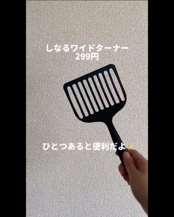 ニトリマニアさんがニトリで見つけたのは「しなるワイドターナー」。幅広のターナーはオムレツや卵焼きを作るときにも活躍しそうですね。身が崩れやすいお魚や餃子をひっくり返すときにも便利なんだそう。