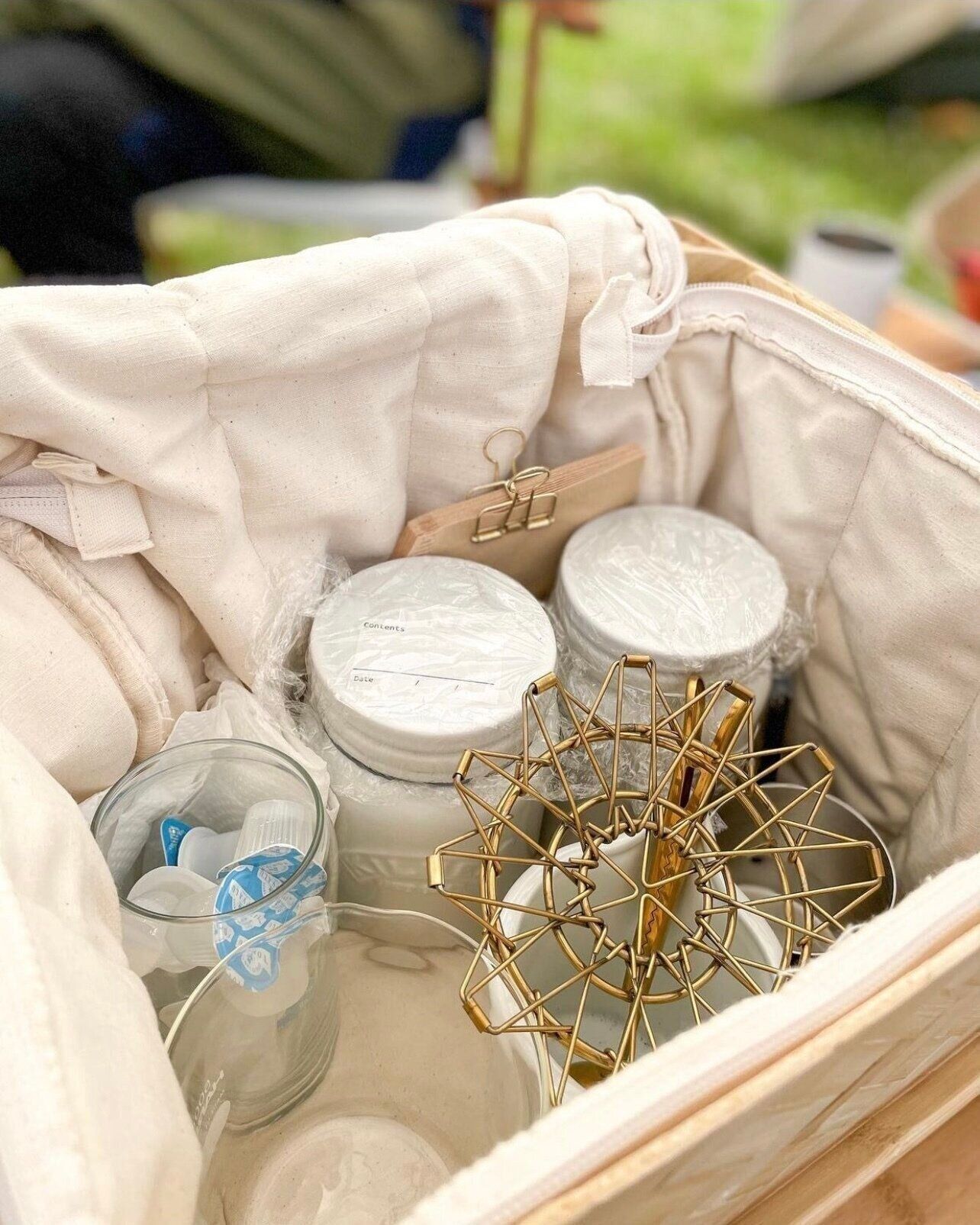 Yayoi_mさんはIKEAの保冷バスケットにコーヒーセットを入れてキャンプにやって来たようですよ。保冷バスケットが一つあると、食材の保存にも小物の収納にも使えて便利。おうちのお庭やベランダで過ごすときも保冷バスケットを用意しておけば、冷えたドリンクをいちいち家の中に取りに戻らなくてよくなりますね。