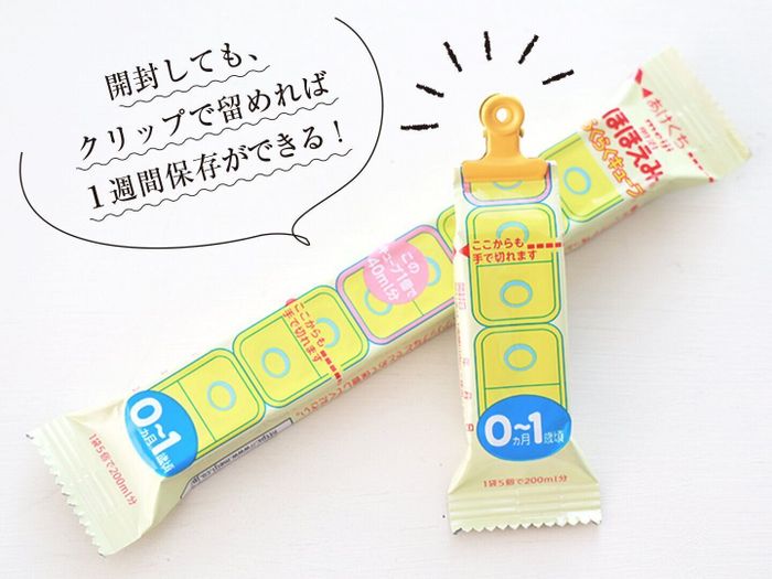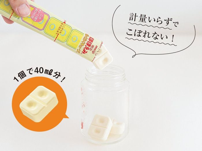粉タイプの「明治ほほえみ」を、添加物をいっさい使わずに、キューブ状に固めました。産後すぐは、どのくらいミルクが必要になるかわからないので、キューブ1個で40㎖分と少量から作れる小分けのキューブタイプが便利! 計量不要で、哺乳びんにポンッと入れるだけ。粉が飛び散らずに調乳できます。個包装なので、使いたい分だけ使えて衛生的。開封しなければ、長期保存も可能です。