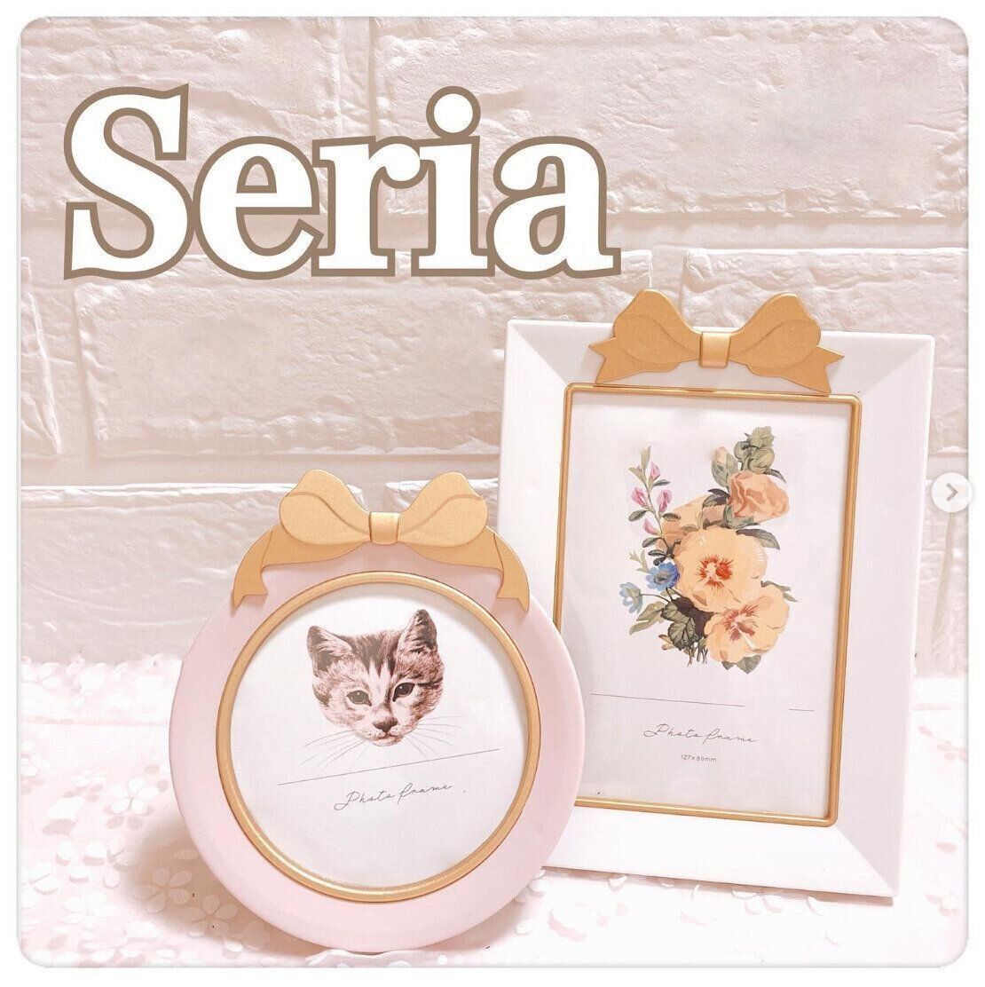 こちらはrisa_.pianoさんがセリアで購入したフォトフレーム。ゴールドのリボンと縁が高見えしていておしゃれですよね。写真を入れずにこのまま飾ってもかわいいとのこと 。どちらも白とピンクの2色展開のようです。