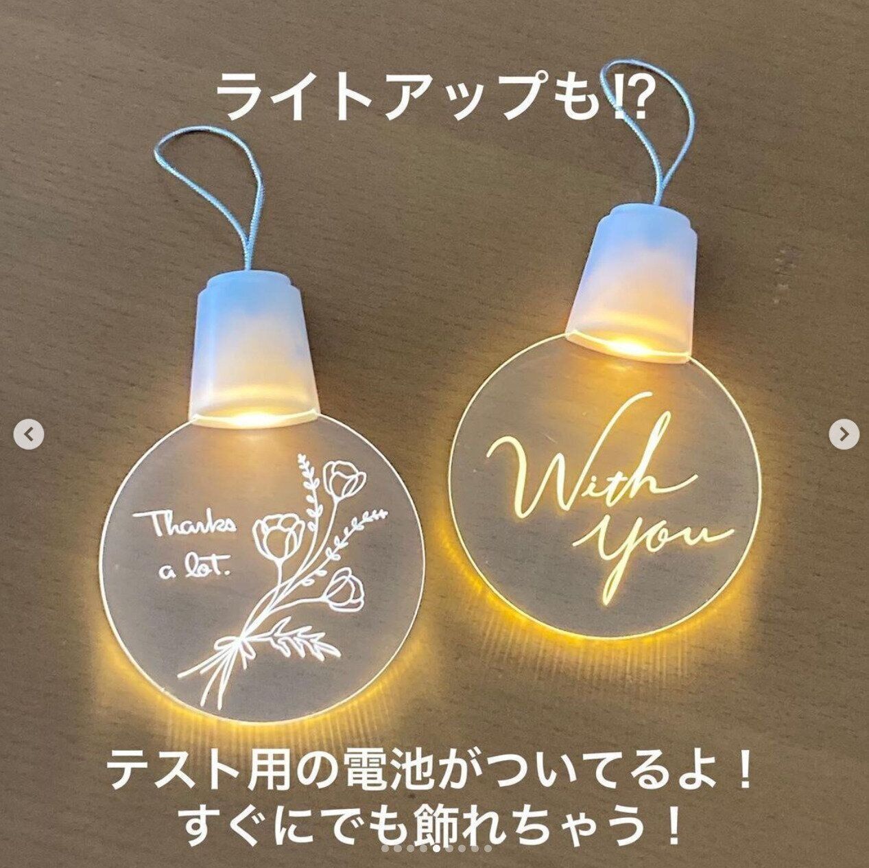 こちらはmy.candiさんがセリアで購入した壁掛けLEDアクリルライト。テスト用の電池(CR2032)が内蔵されているから、すぐに使えるというのも便利ですね。この方はおしゃれさにひかれて全柄購入してしまったんだとか♪