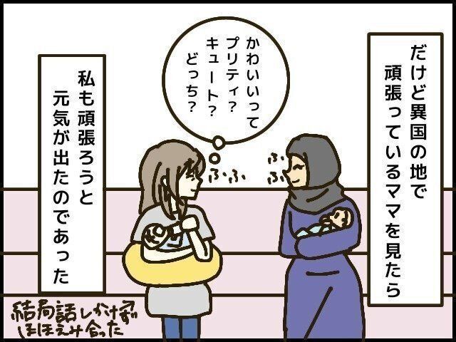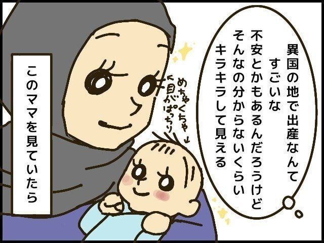 実際に話したわけではないので想像でしかないのですが、異国の地で出産してきっと不安もあるはずなのに、笑顔でキラキラして赤ちゃんに話しかけてるママを見ると今の自分の悩みがちっぽけに思えてきました。