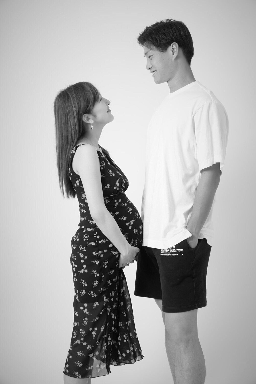 出産前にマタニティフォトも撮影。知人に紹介してもらったプライベートスタジオに夫と2人で行き、自分たちで撮影をしました。