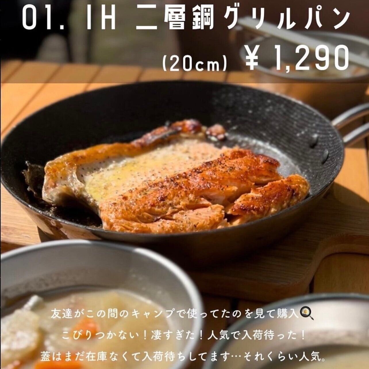26__sunさんが愛用しているのはニトリのIH二層鋼グリルパンです。お友達が使っていたこちらのグリルパンがまったくこびりつかないことに感動して購入を決めたそうですよ。人気商品なので入荷待ちをしてようやくゲット。こちらは1,290円商品のようです。