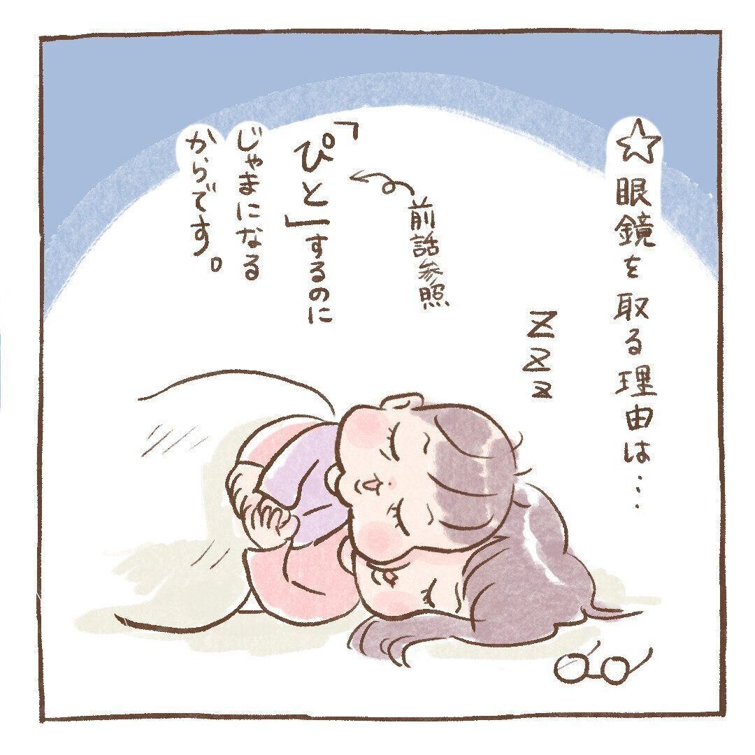 ほぺちゃん的には、「ママ寝るんでしょ? なんで眼鏡してるの??」と思ったのかもしれません。