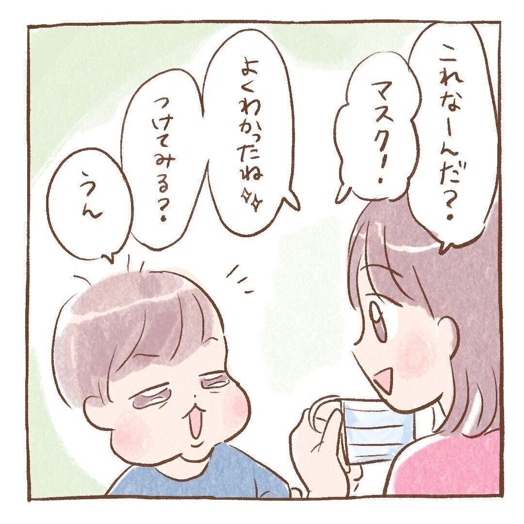 部屋に私のマスクが落ちていると、「ママのマスクあったよ!」と拾って持ってきてくれたりもします(笑)。