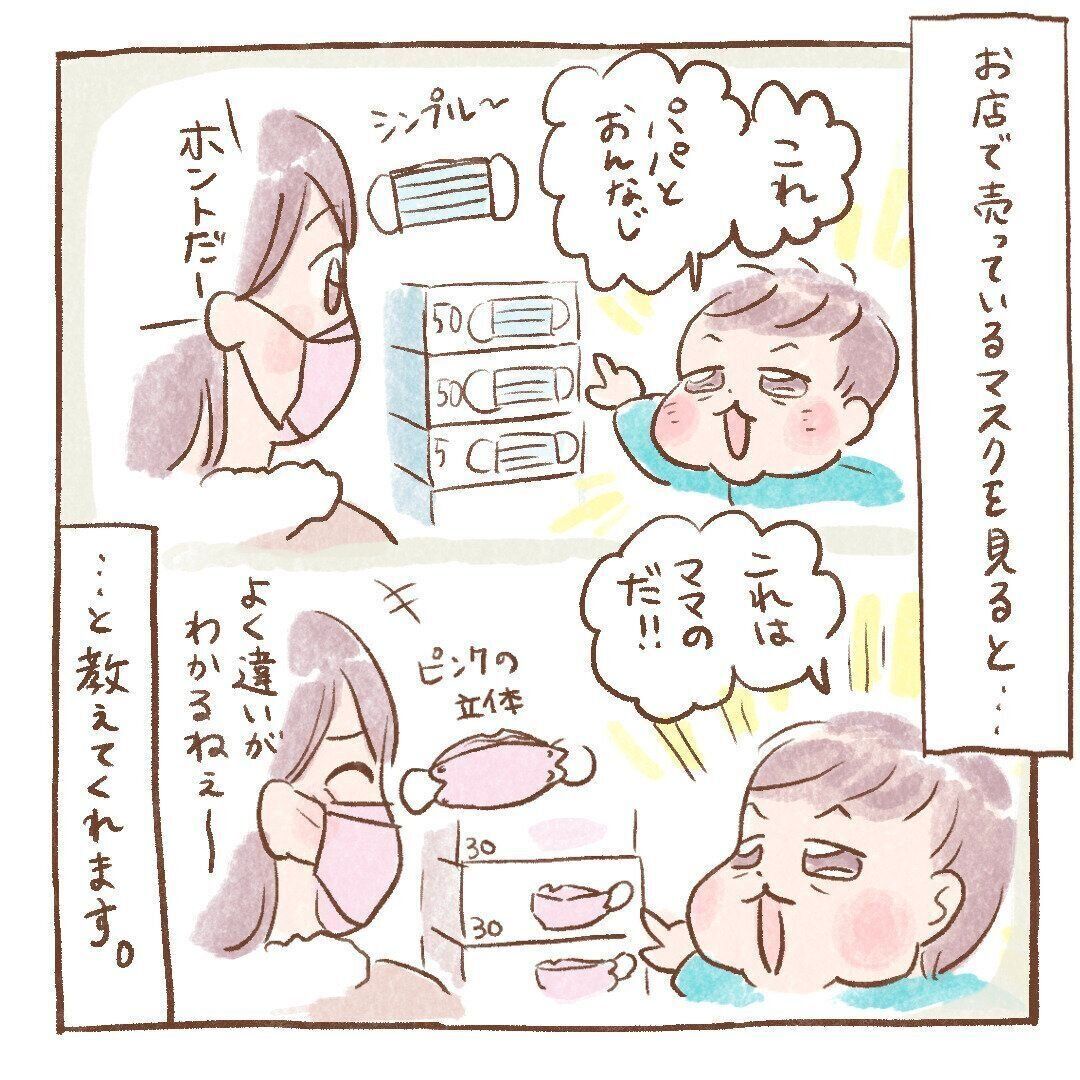 ほぺちゃんの中で「パパのマスク」「ママのマスク」がしっかり分類されているのが面白いなと思います。