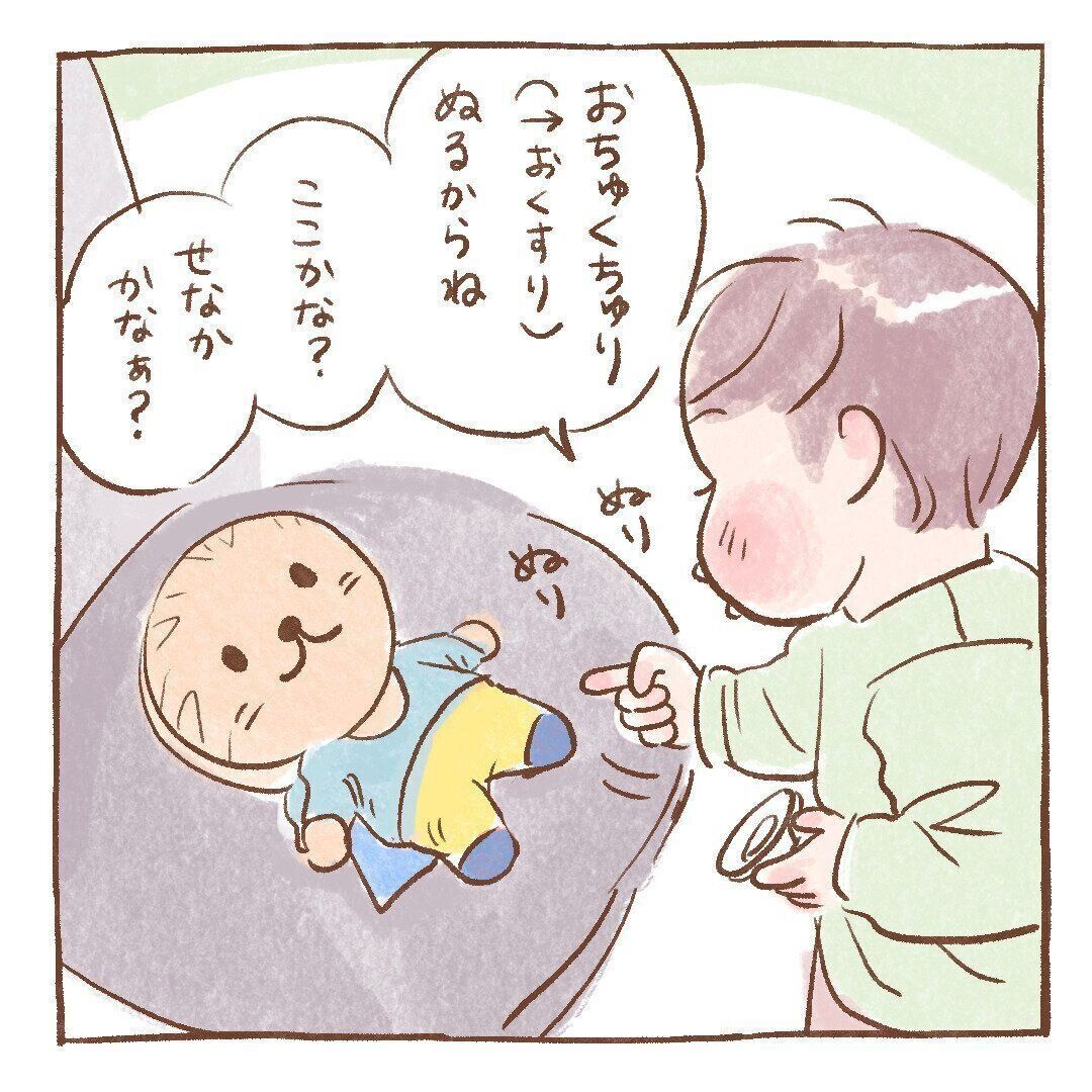 ほぺちゃんがお人形のお世話をするところを目撃しました…!