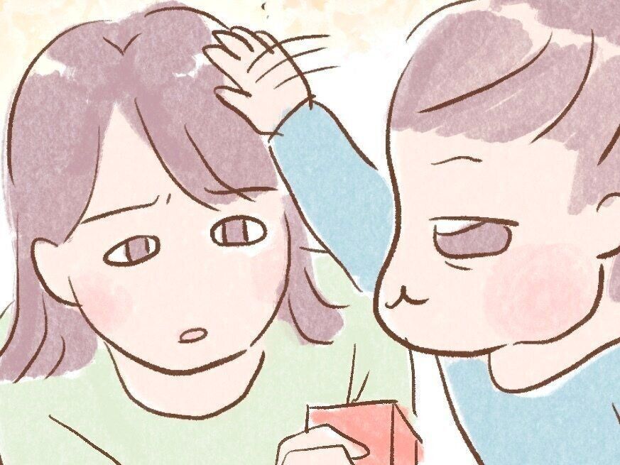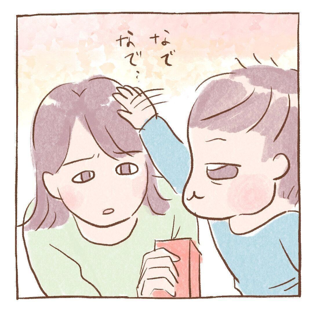 愛息子に頭をなでられて嬉しくないわけがありません。