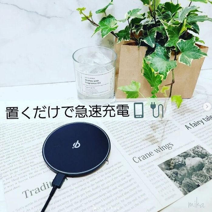 mika24angel_さんはワイヤレスチャージャーを購入しました。一般的には高価なワイヤレスチャージャーも、ダイソーではなんと1,100円! 充電器を抜き差ししなくていいからとても便利だそう♪ コースターと同じくらいのコンパクトサイズで、机の上でも邪魔にならないのがうれしいポイントなんだとか。
