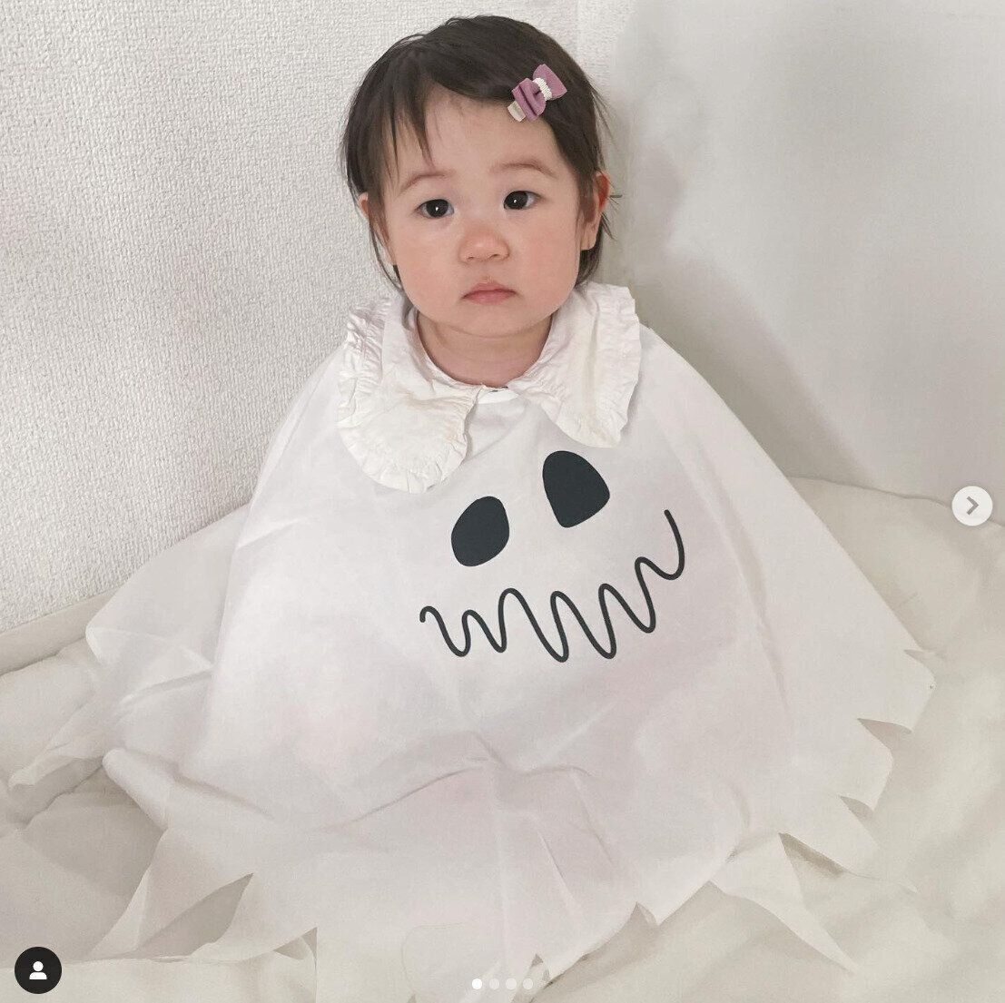 こちらはfuk_a22さんが3COINSで購入したおばけポンチョ。サッと羽織るだけで仮装ができて便利そう。首元から洋服のえりを出したらさらにかわいくなったとのこと♪ 試着だけのつもりがたくさん写真を撮ってしまったそうです。