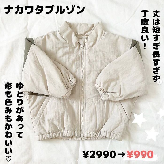 icchan1006さんは、中わたブルゾンを購入。値下げしており、2,990円→990円ととってもお買い得だったそうですよ。ゆとりがあって形も色味もかわいい!とお気に入りの様子。丈も短すぎず長すぎず、丁度良いんだとか。これから使えるアウターが1,000円以内で買えるのは嬉しいですよね♪