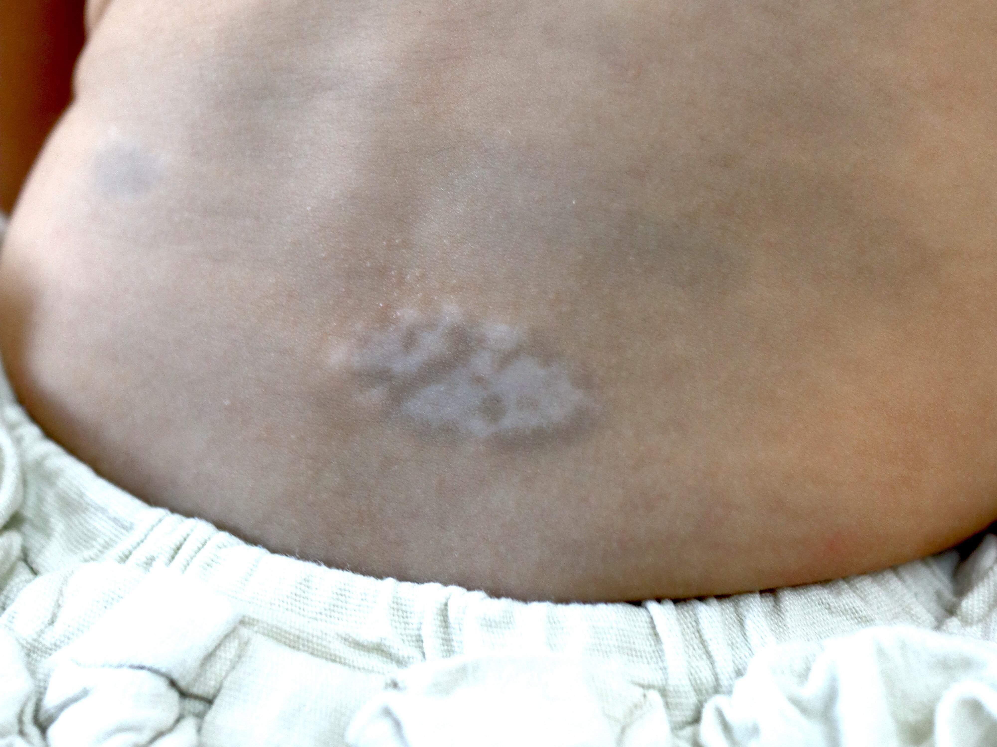 ただ、あんの異所性蒙古斑はかなり色が濃く、自然に消えない上に、成長とともに伸びて大きくなってしまうんです。大きくなってからでは治療する範囲も広くなり、痛みを感じる時間も長くなってしまうことから、私たちは今のうちにできる治療をしてあげたいと考えています。