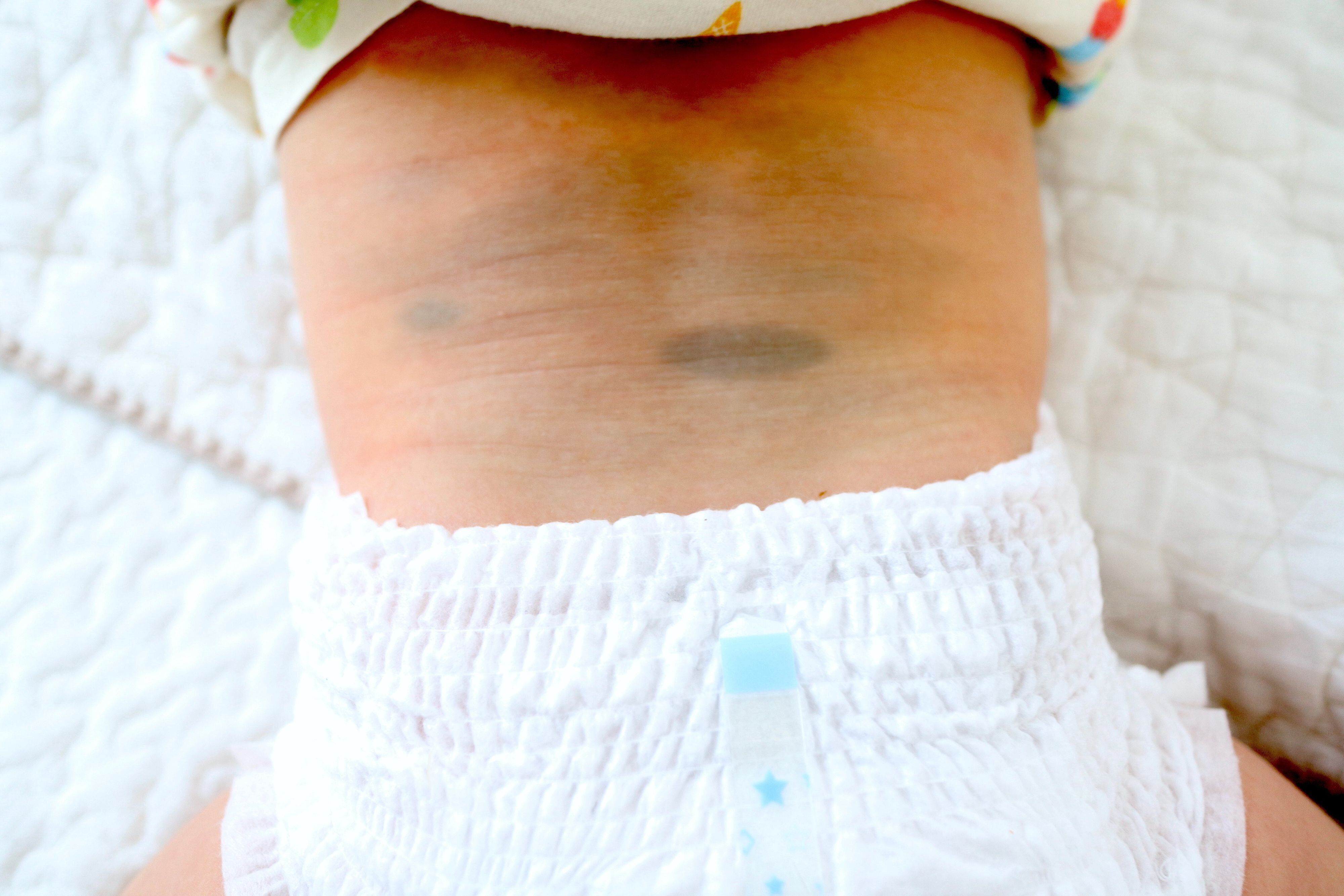 愛美さん(以下敬称略) あんのあざは背中の下のほう、セパレートの水着を着ると見える場所にあってかなり色が濃いものです。9~10カ月健診で小児科の先生に相談すると、「このあざは消えないもので成長に伴って大きくなる」と言われたことから、紹介状を書いてもらい、大きい病院の皮膚科でレーザー治療をすることにしました。