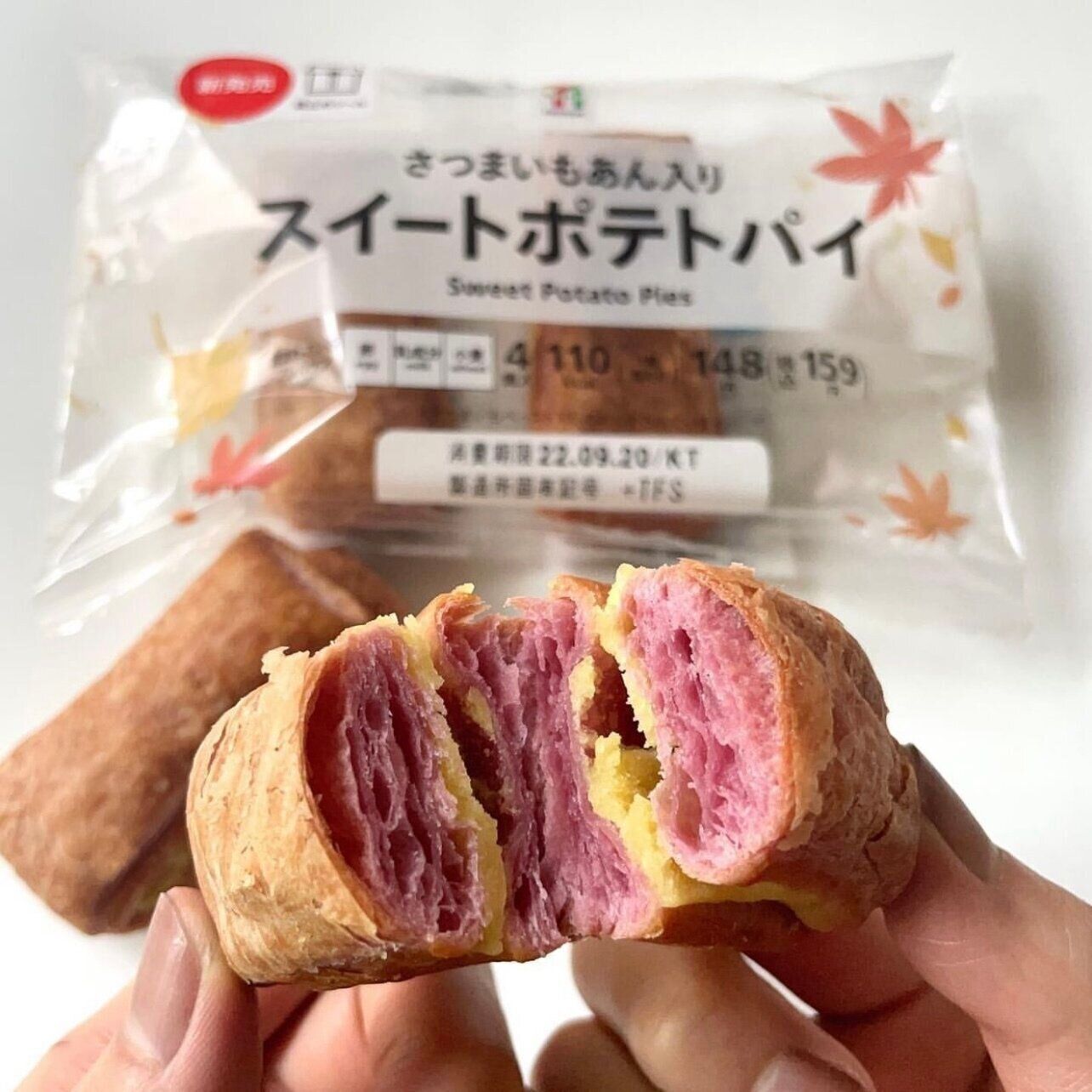 imossannnさんがセブンイレブンで見つけたのは、「さつまいもあん入り スイートポテトパイ」です。しっとりとしつつもお芋らしいほくほく食感の餡を、食べやすいスティック状にパイ生地で包んだ一品。紫色と黄色の断面も美しいですよね。こちらは159円商品のようですよ。