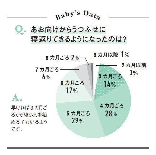 寝返りは、「立って歩く」ために必要不可欠な運動発達ではないので、する子もしない子もいます。「できない」のではなく「しない」のであって、その後の運動発達に影響することもありません。