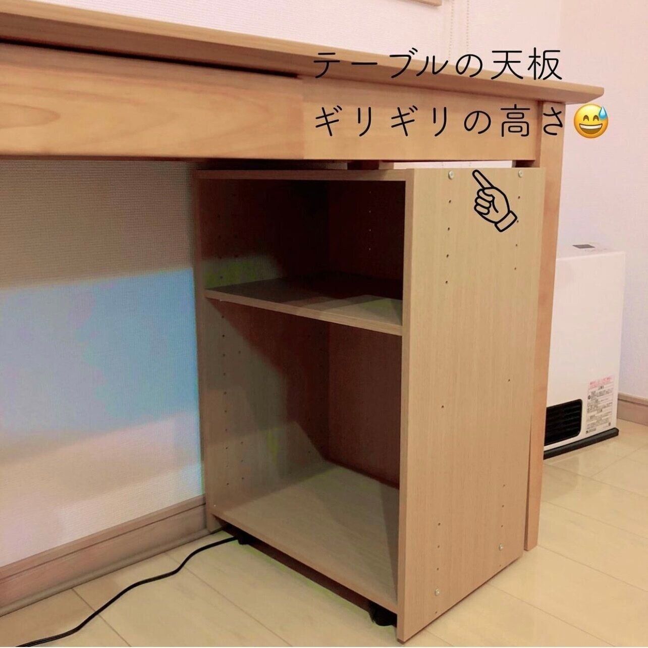 tomooooo______myhomeさんはニトリのカラーボックスにキャスターを取り付けてデスクワゴンをDIY。キャスターが目立たないように底面の棚板を少し上げるのがポイントなんだそう。デスクの左右どちらに設置するか決めているのなら、側面に取っ手を取り付けるのもGOOD!