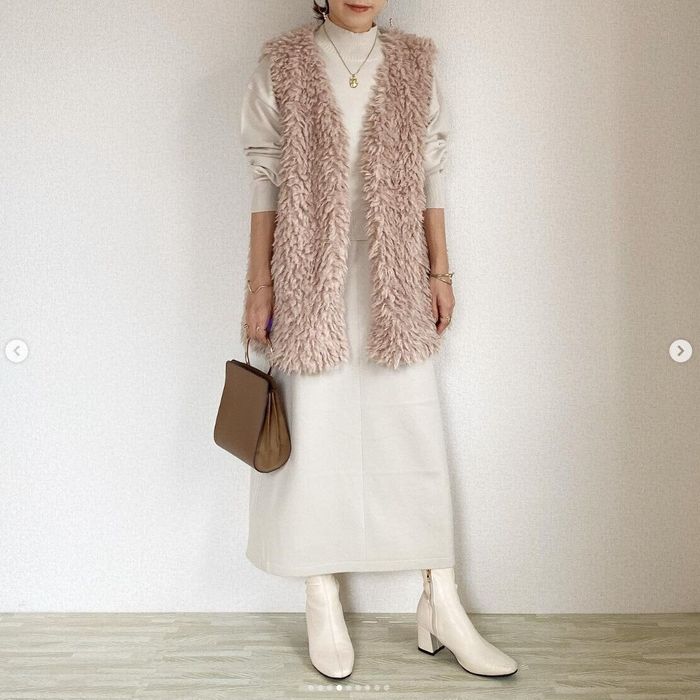 NANAさんは、マルチウェイワンピースを購入。こちらはトップスとワンピースがセットになっており、セットアップで着ると上品に仕上がるんだとか。デートやオフィスカジュアルにもおすすめとのこと。ファーベストを重ねると、今年らしいコーデに!着回し力の高いセットアイテムですね。