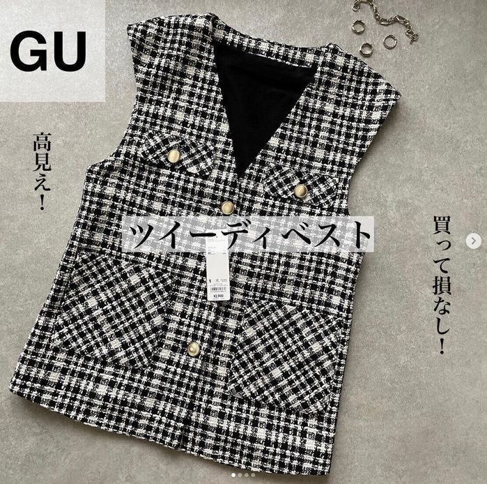 kanaripo216さんは、ツイーディベスト(2,990円)をゲット。着る時期が短くなるかもと思い、購入を悩んでいたけど、やっぱり買って良かったとのこと。ツイードの繊細なデザインが、可愛くて高見えするアイテムですよね。「買って損なし!」とおすすめのようですよ。
