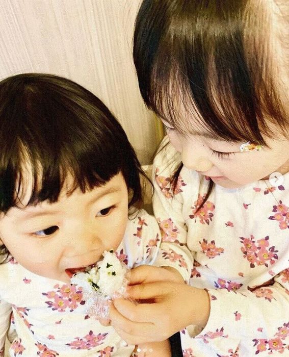姉妹での可愛らしいおにぎりショット