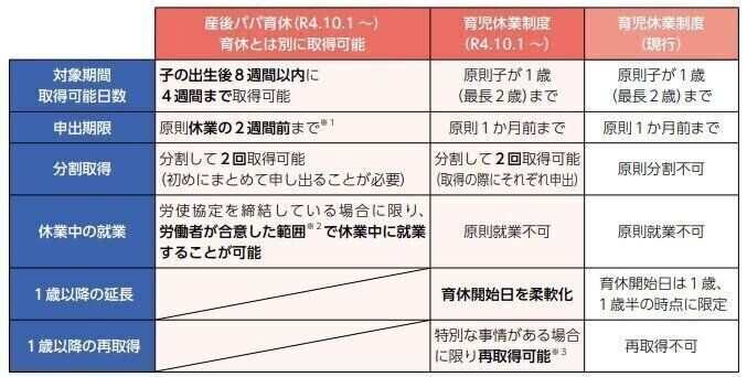 ーー先ほど産後パパ育休(出生時育児休業)も2回に分けて取得できる話がありましたが、男性が産後パパ育休と従来の育休を取る場合、それぞれ1回ずつで2回なのですか?