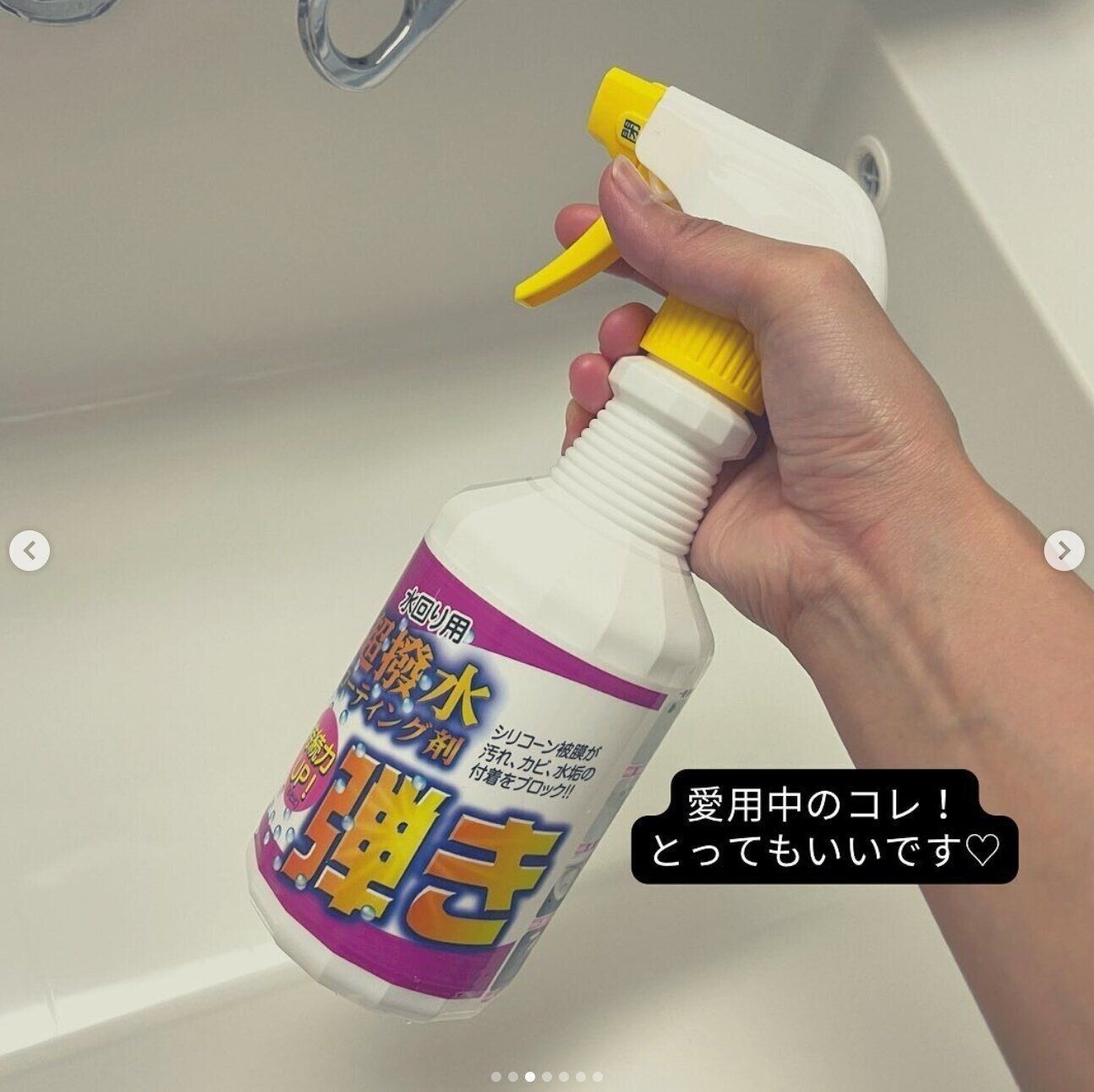 itsumi____214さんはこちらの撥水コーティングスプレーを愛用中。2~3週間に一度スプレーするだけで洗面所の撥水コーティングができるそうで、手軽にできておすすめとのこと!こちらの方は、水を弾いている様子を見ると嬉しくなるんだとか♪
