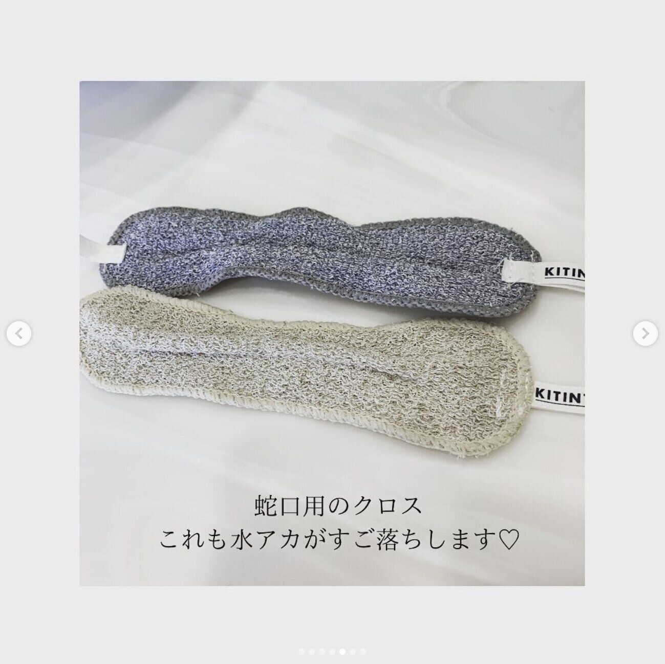ちーさんが「買ってよかった」というのが3COINSの蛇口用クロス。こちらのクロスを使うことで水アカが落ちるとのこと♪ 2色あるそうで、おしゃれなデザインなのでキッチンに常備しておきたくなりますよね♪