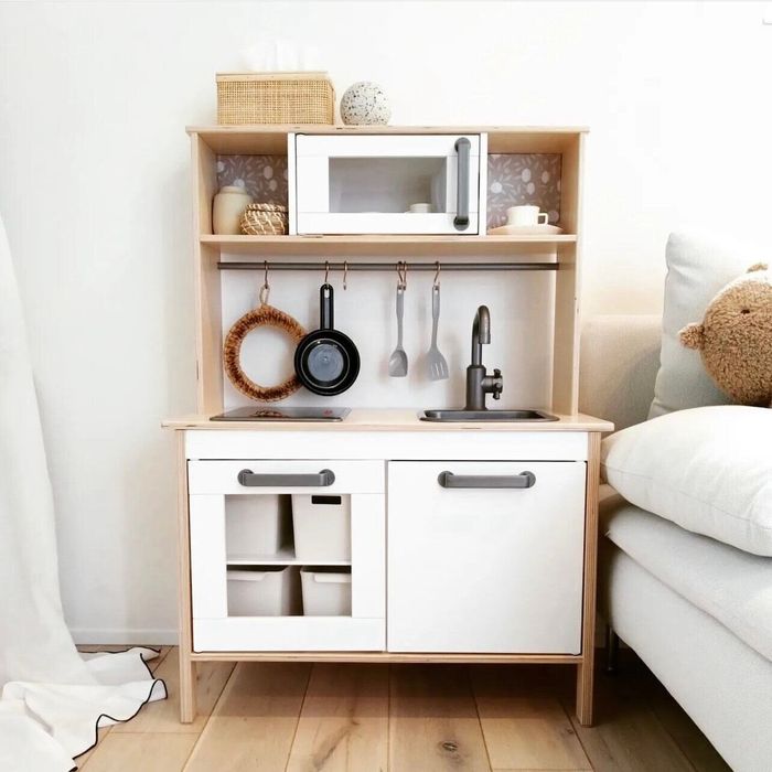 ________z.0099さんが「売れてる理由がわかる」と絶賛するのは、木目調×ホワイトの組み合わせがおしゃれなIKEAのおままごとキッチン。お気に入りのクロスを貼ったりして自分好みにカスタムしやすいうえ、収納力も抜群でなんだそう。