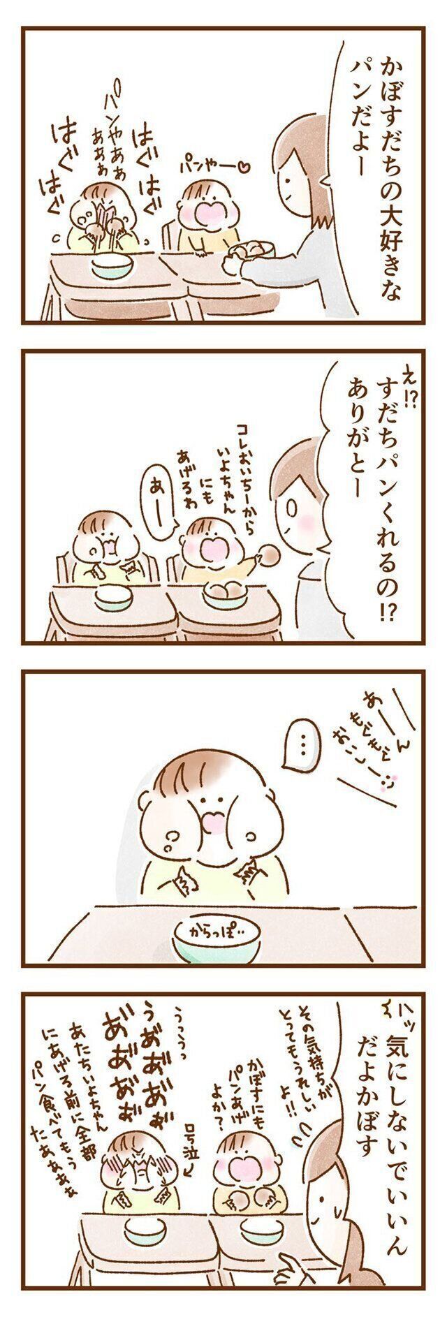 <「私もママにパンあげたかった!」と号泣するかぼすちゃん>