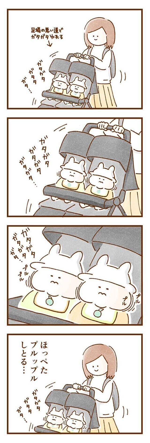 赤ちゃんの頃から現在までずっと大変なことは、私1人で双子を外に連れ出したときに2人ともグズってしまったときです。『2人とも抱っこしてあげたいのに手が足りない!!』となります。そんなときは、しばらく立ち止まって2人の気持ちを聞いてあげたり、おやつをあげたりしてなんとかやり過ごしています」