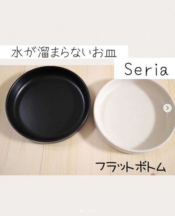こちらはnuecopecoさんがセリアで購入した水が溜まらないお皿。底がフラットになっていて水が溜まらないので乾きが早いのだそう。重ねて収納することもできるようです。シンプルなデザインで使いやすくおすすめとのこと◎
