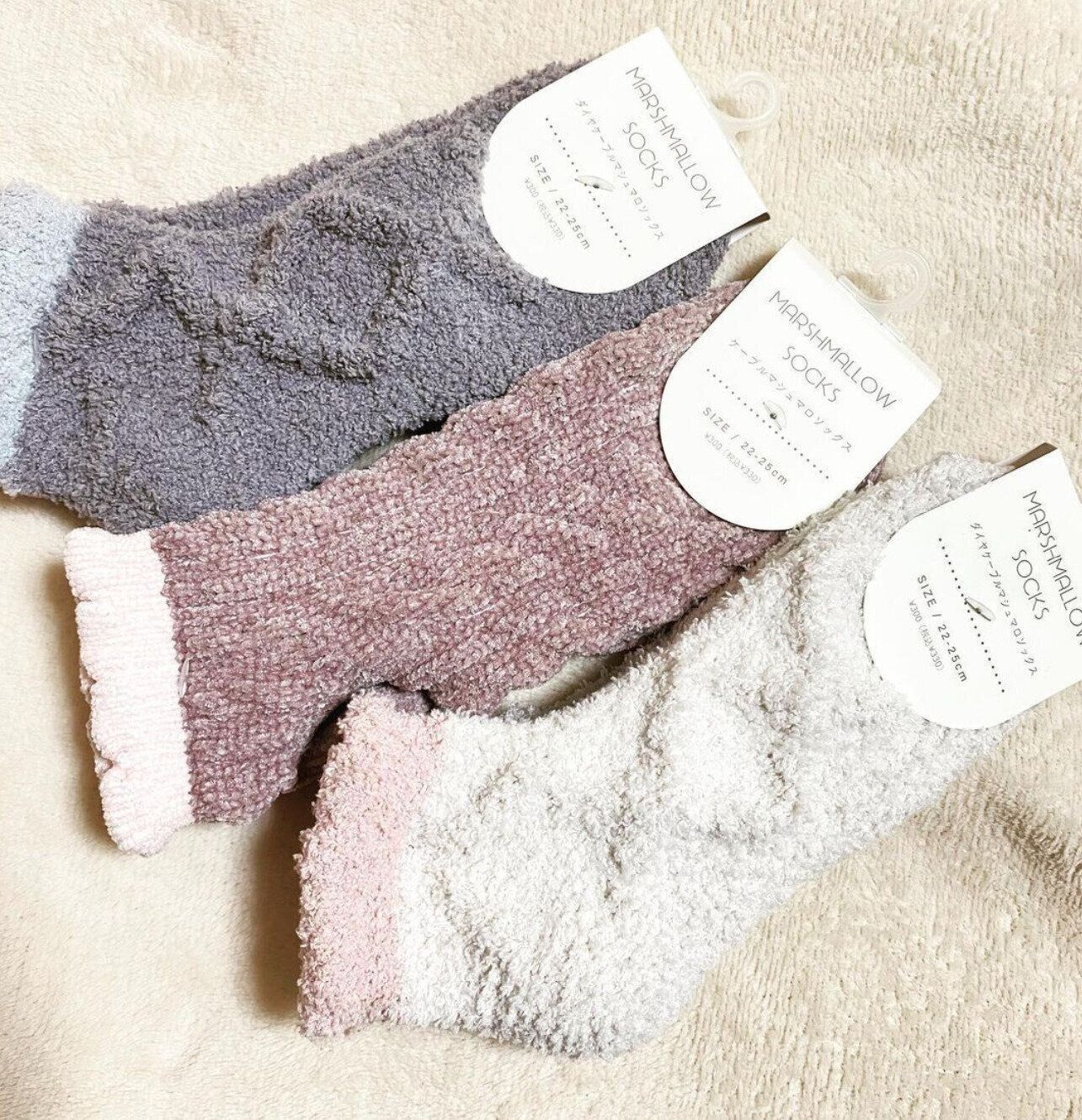 こちらはochanoco_grmさんが3COINSで購入したマシュマロソックス。ふわふわな生地でとても履き心地がいいんだとか。 足元の冷えをしっかり守ってくれそうですね。どれもかわいくて履いているだけで気分が上がりそうです♪