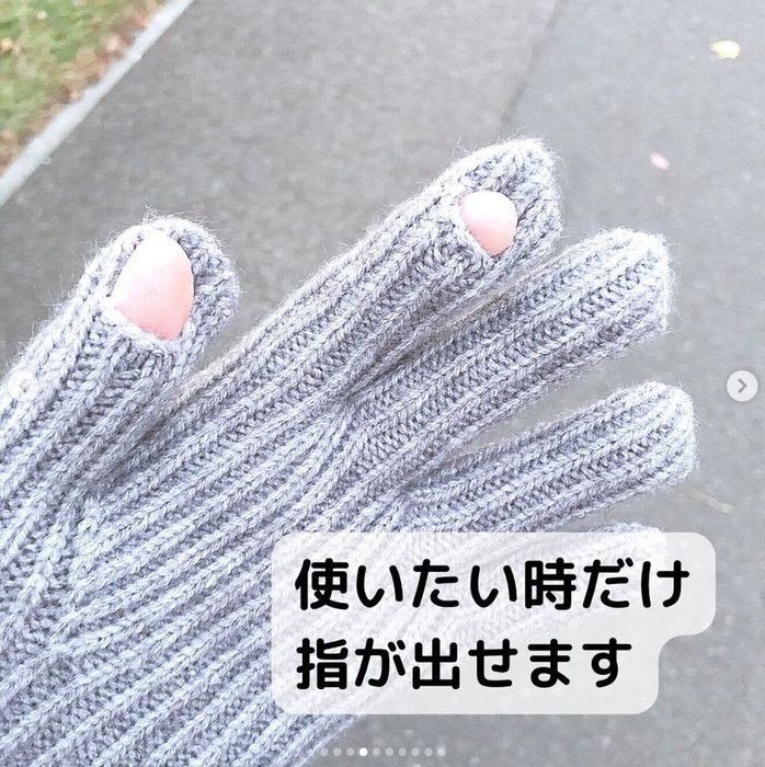 こちらはtumug25さんが3COINSで購入した指穴付きリブニット手袋。親指と人差し指の先端部分に穴が開いており、スマホを操作したいときなどに指先を出せるのだそう。手首まで覆われるのでしっかり防寒できるんだとか♪ こちらは550円商品のようです。