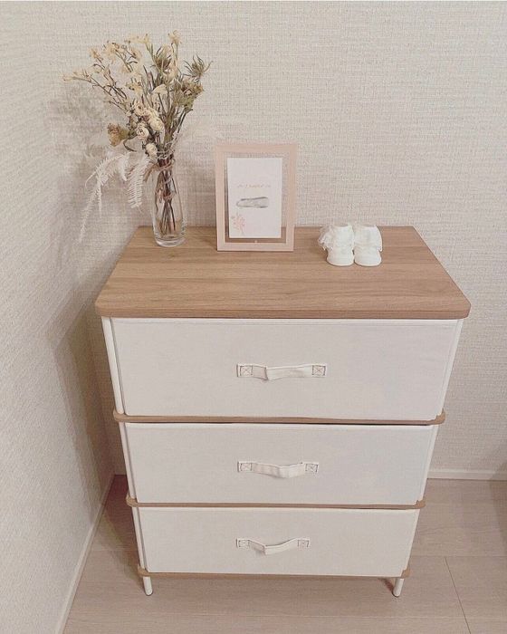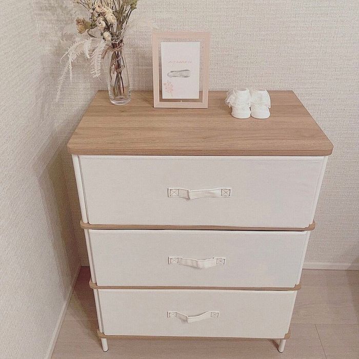 puu_20227さんはニトリで購入したチェストをベビー収納として使用しているみたいですよ。ベビーワゴンのような見える収納よりも、中の物を隠しておける見えない収納の方が向いていると思ったんだそう。組み立ても1人で簡単にできたそうですよ。