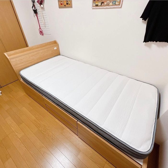 MIHO*さんはニトリで収納付きのベッドフレームとマットレスを購入したそうです。収納付きベッドだと、狭いお部屋でも物をたくさんしまえるのが助かりますよね。シーズンオフの衣類を入れたり、予備のベッドリネン、お子さんの工作など思い思いの物がしまえそう。
