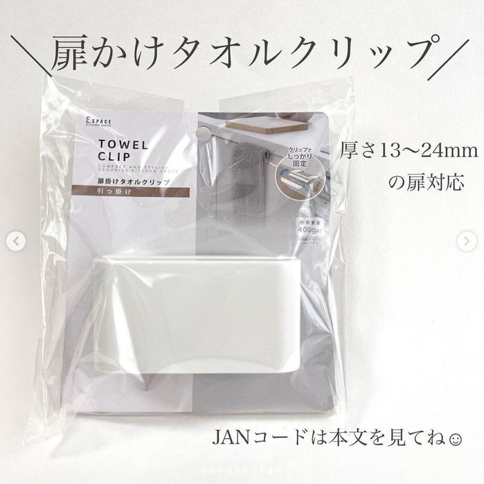 こちらは100kin_choiceさんがセリアで購入した扉掛けタオルクリップ。扉に掛けて使うタオルクリップのようです。クリップでタオルをしっかり固定できるので引っ張っても落ちないんだとか。プチストレスが解消できて便利そうですね!