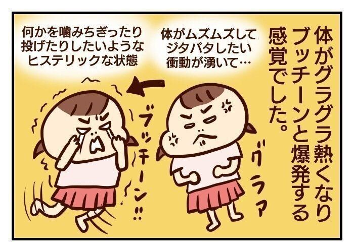 ただの怒りと癇癪は違い、癇癪は体の中から感情がグラグラ湧き上がって、苦しくてたまらない感覚でした。