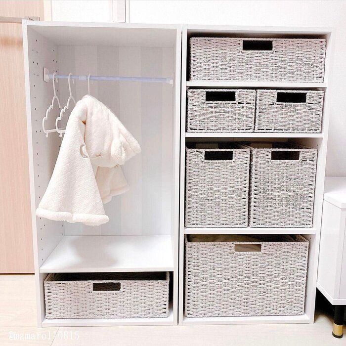 ryo_home410さんが使用しているのはニトリのスチールワゴンです。以前からこちらの商品を利用していたそうですが、使い勝手の良さに今回追加で購入したようです。こちらは脱衣所に置いてパジャマやバスタオルなどを入れているそう。もちろんお掃除のときも片手でサッとどかせられて便利ですね。