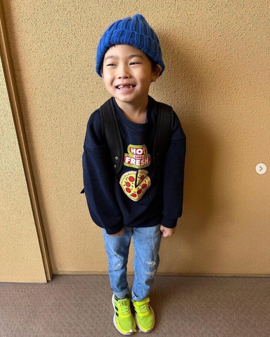 yuukiさんは、男女兼用のグラフィックスウェットプルオーバーを購入。お子さんが自分で服選びに挑戦する「MY FIRST OUTFIT」という参加無料の店舗イベントにて、こちらのピザ柄を選んだようですよ。とってもお似合いで素敵なコーデですよね。
