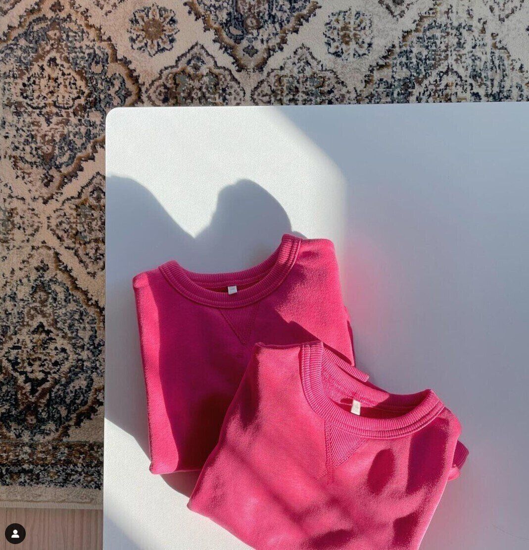 こちらは、男女兼用のクルーネックスウェットプルオーバー(990円)です。rs__codeさん好みのシンプルなピンクスウェットだそうで、息子さんたちにとゲットしたんだとか。ダボッとしたシルエットを狙って、ワンサイズ大きめのものを購入したようですよ。パッと華やかなピンクカラーで目を引きますね♪